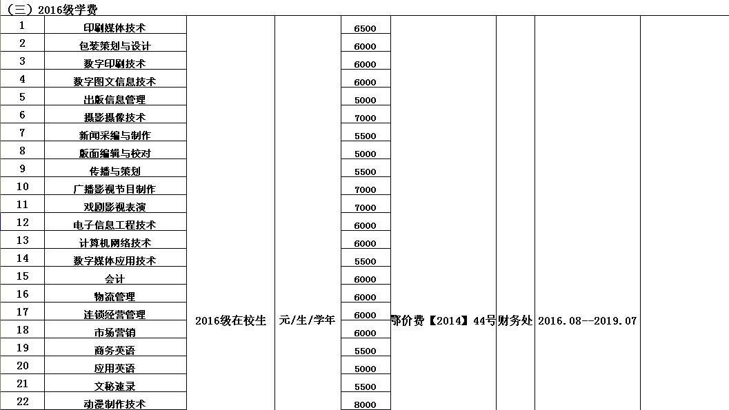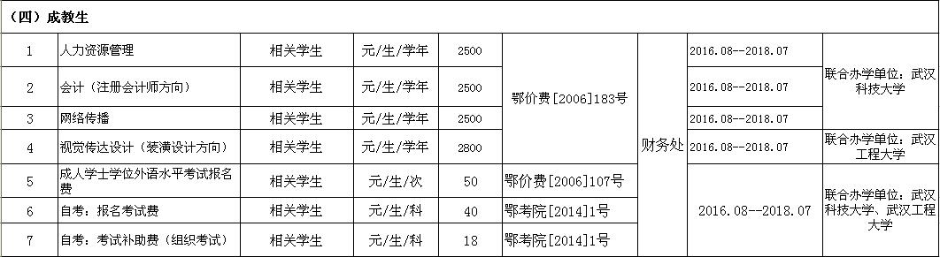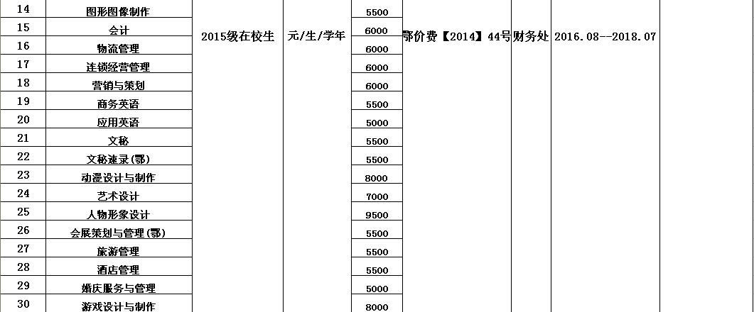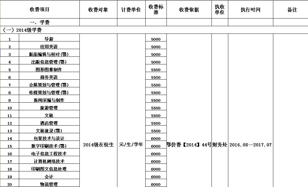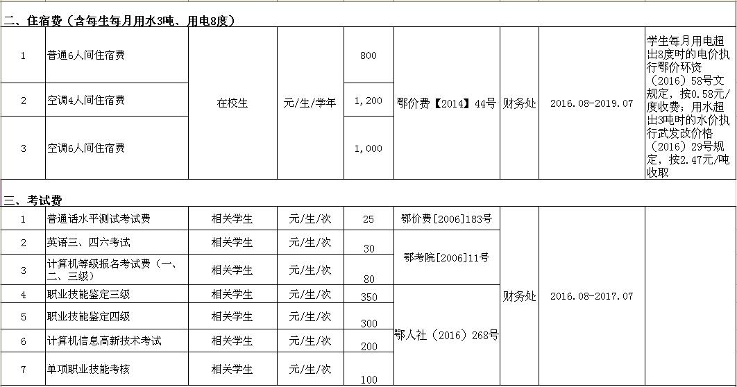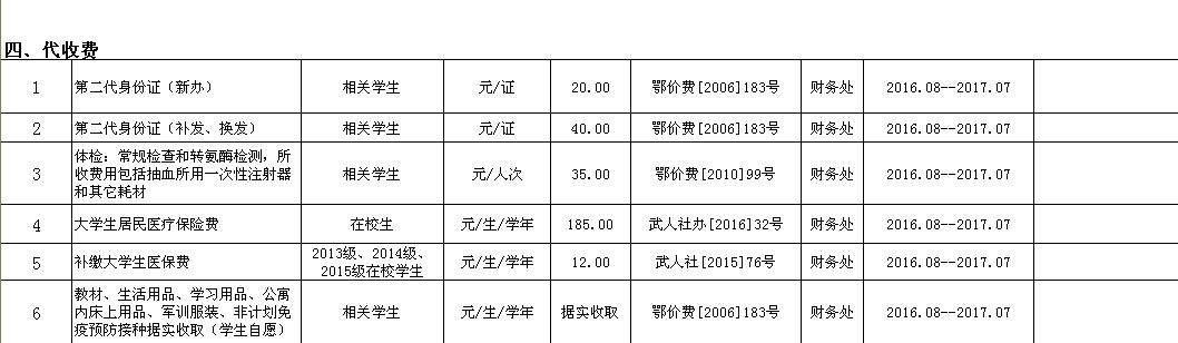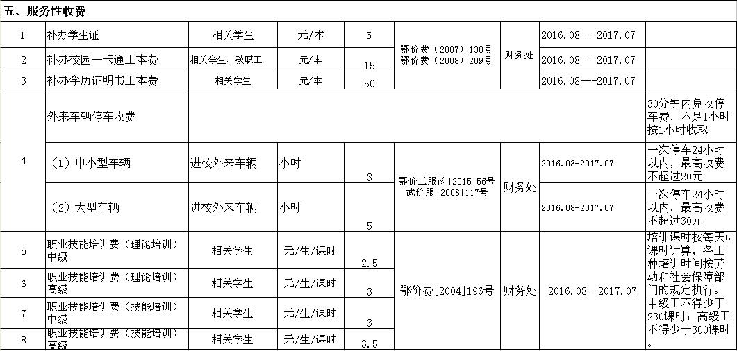 开云官方端网页版登录入口2016-2017学年收费目录清单