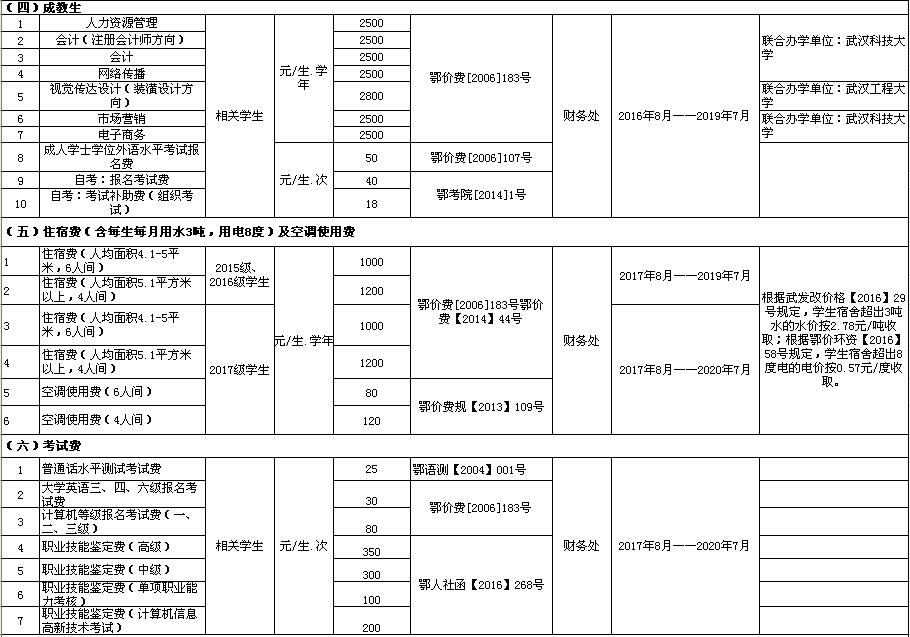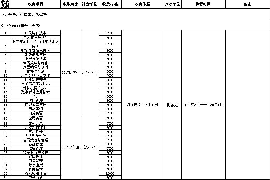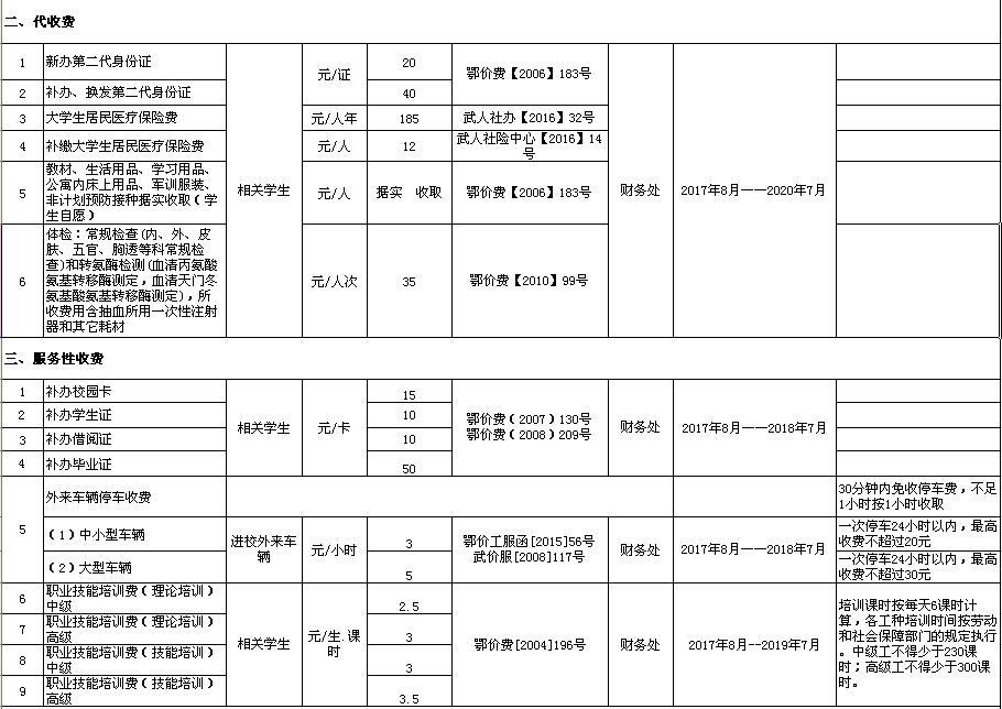 开云官方端网页版登录入口2017—2018学年收费目录清单