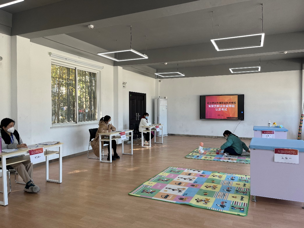 12月18日,开云官方端网页版登录入口组织2022年育婴员职业技能等级(三级/高级工)认定考试,2000级15名幼教类专业学生参与认定(部分学生受疫情影响无法参与考试),认定考试工作由教育与管理学院、培训中心组织实施,副校长孙翔担任考试主考并巡视组考工作。